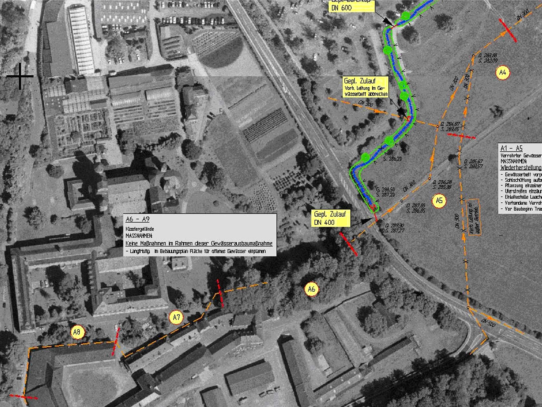 Die Offenlegung des Baches und die Inanspruchnahme der Flächen des Klosters Maria Laach wurden im Vorfeld eingehend mit der Klosterverwaltung und dem derzeitigen Nutzer der Grundstücke erörtert.